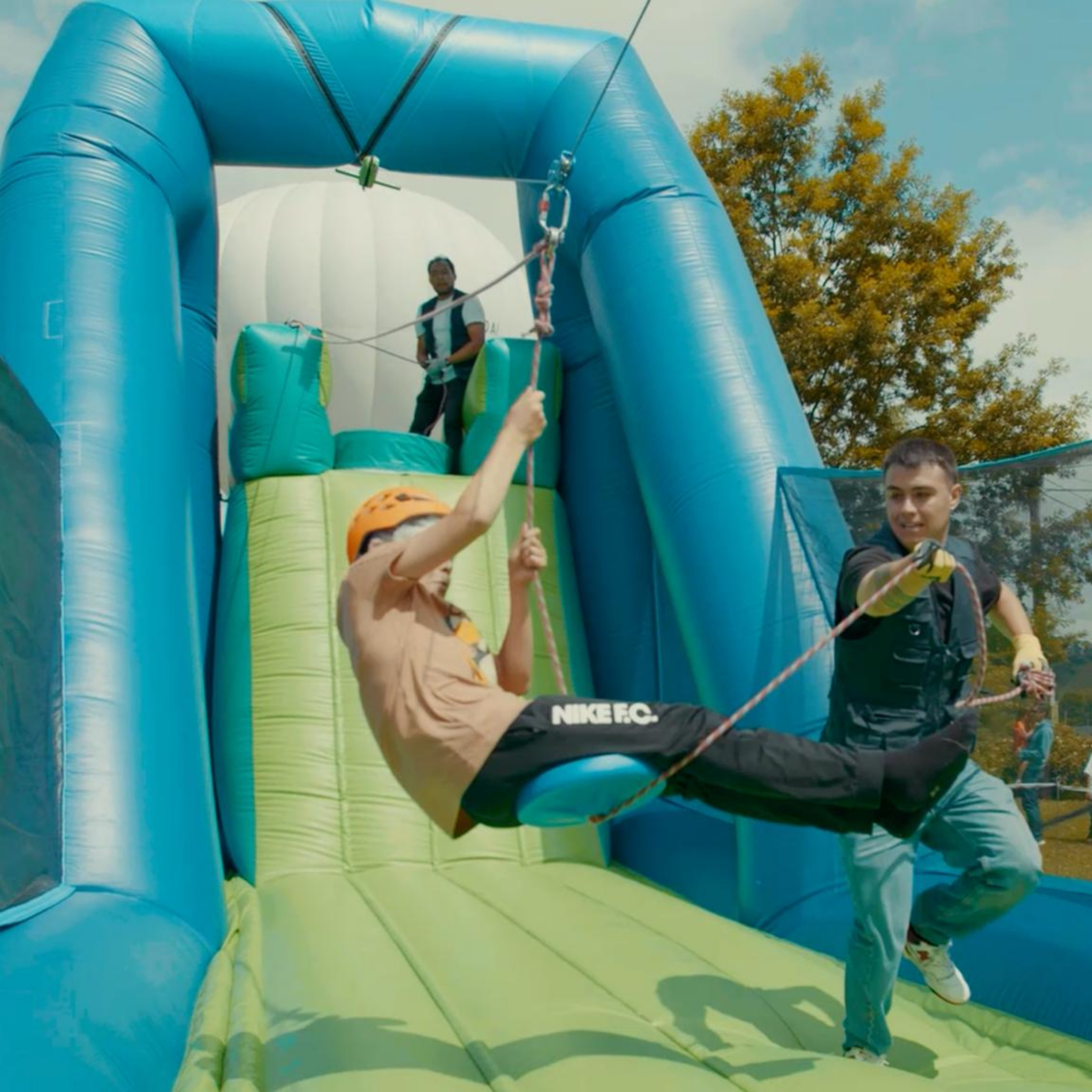 Un chute de emoción donde subes, te lanzas y aterrizas con sonrisa garantizada. Diversión, movimiento y adrenalina sin salir del suelo (bueno, casi).
