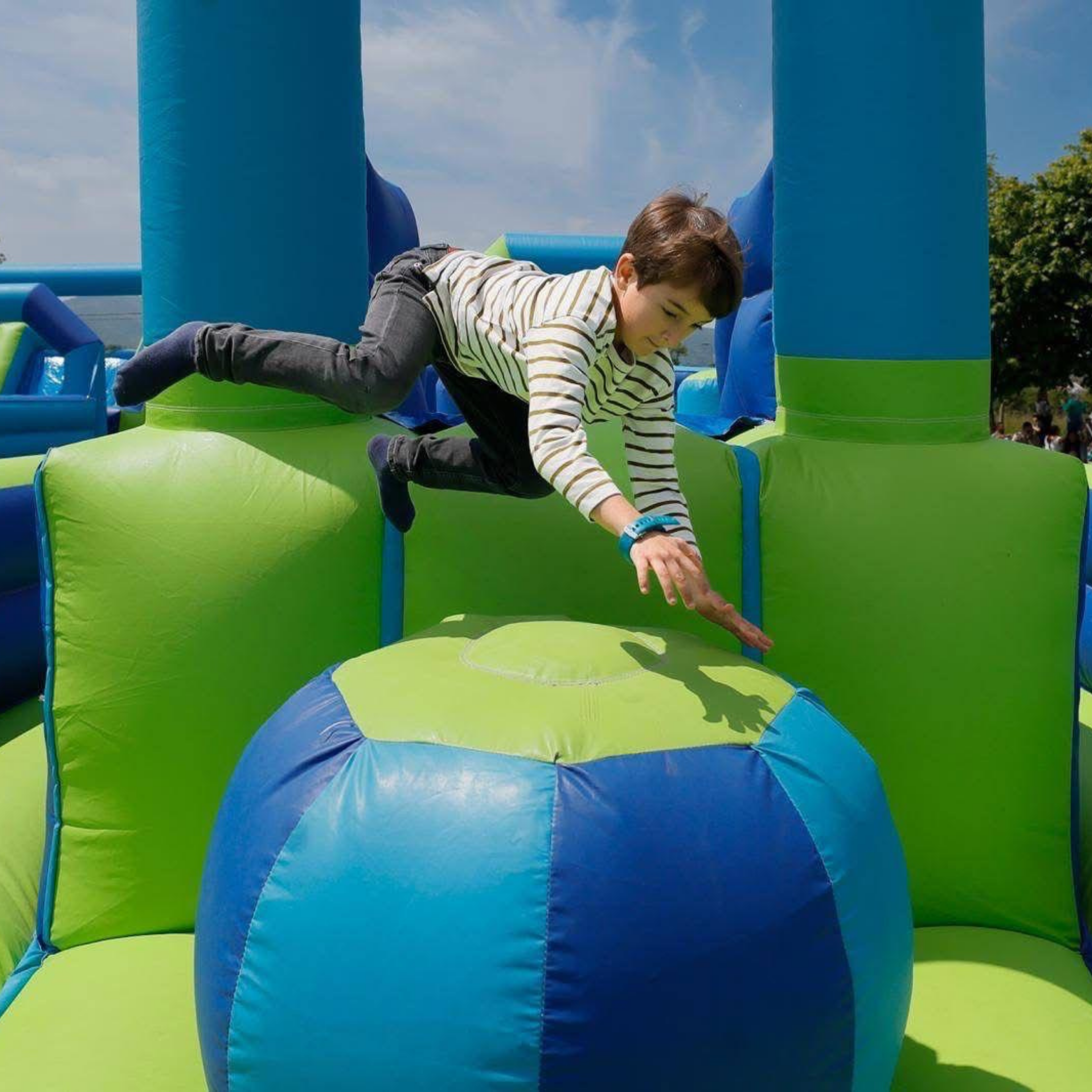 Más de 100 metros de obstáculos, saltos y toboganes sin parar. El reto no es llegar al final… ¡sino no reírte en el intento!